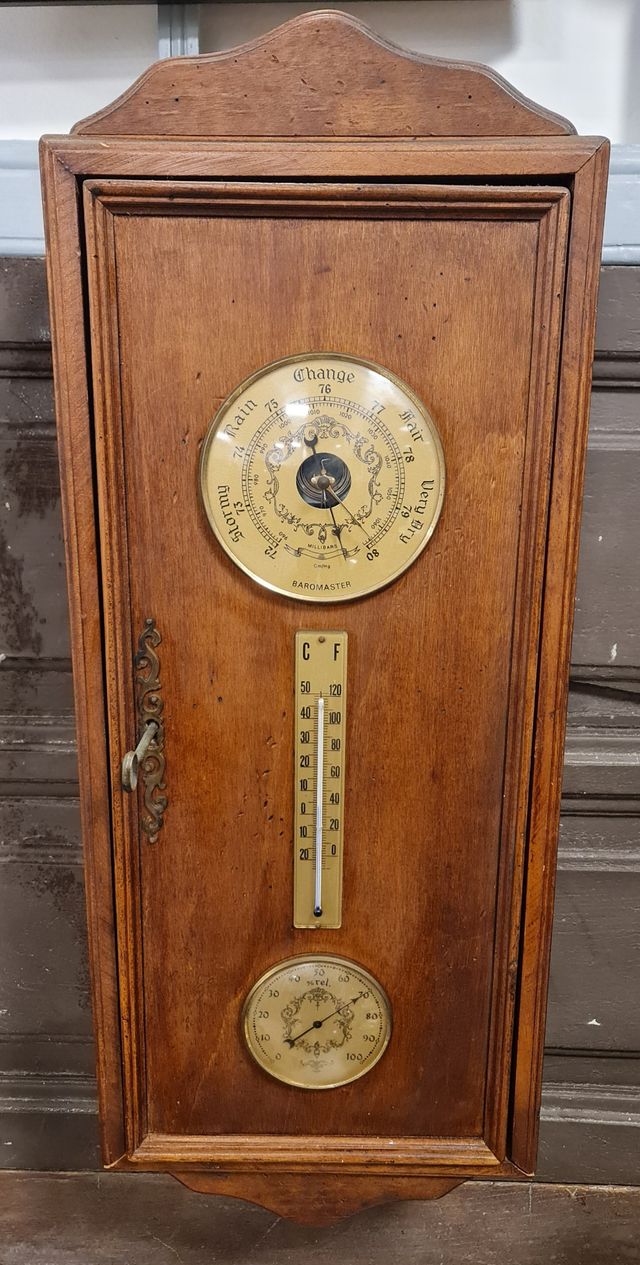 Título: Estación Meteorológica Vintage "Baromaster" con Mueble Bar Oculto – Madera de nogal
