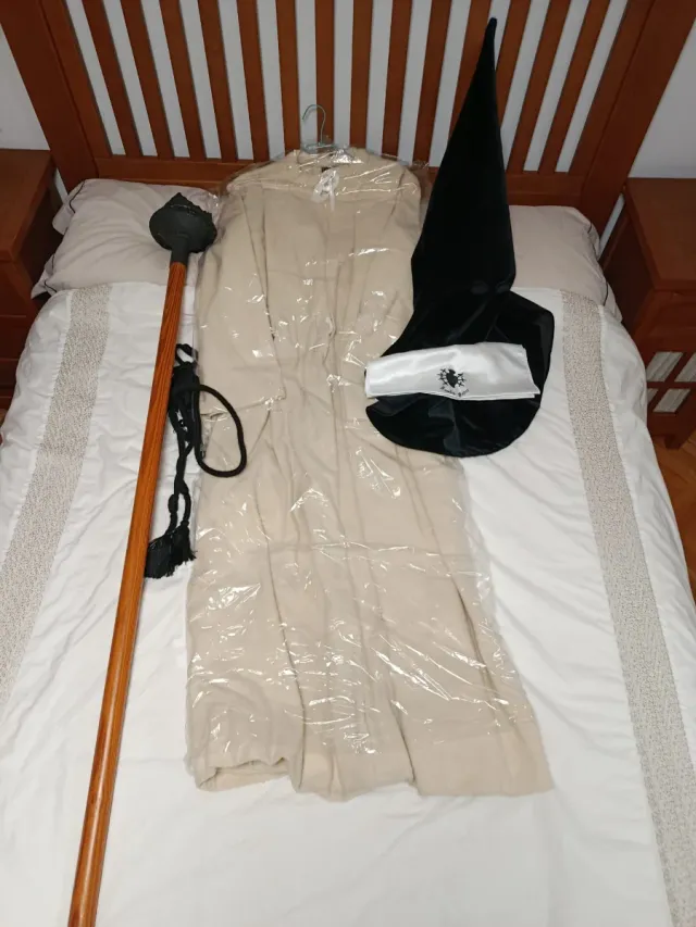 Estameña de la cofradía Nuestra Madre Angustias. - Túnica color beige. - Capirote negro - Cordon negro - pañuelo de cofradía - Hachón