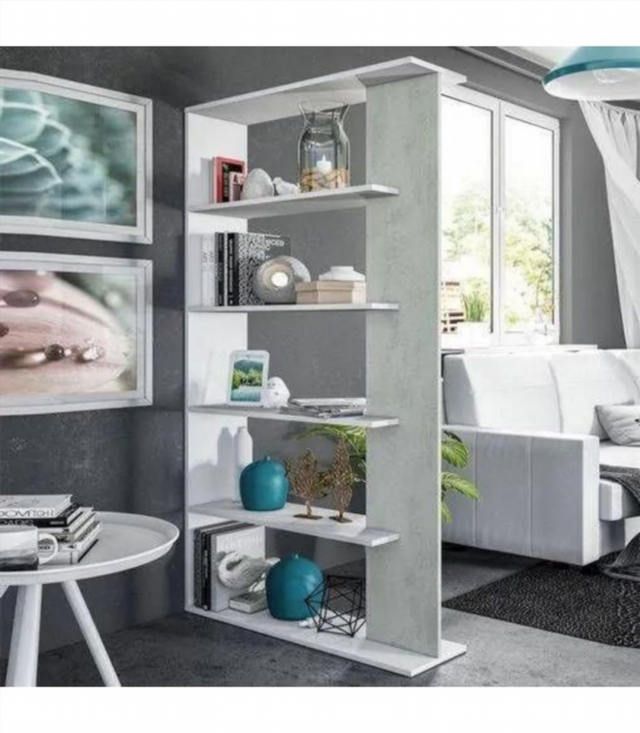 Estantería 5 Baldas. Blanco Artik/Cemento