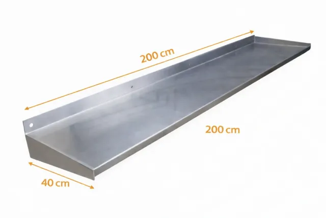 Estantería de acero inoxidable de 2 metros de longitud, ideal para hostelería. - Material: Acero inoxidable. - Longitud: 200 cm. - Profundidad: 40 cm.