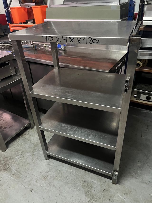 Detalles del productoEstantería de acero inoxidable de cuatro niveles. Ideal para cocinas o almacenes.
