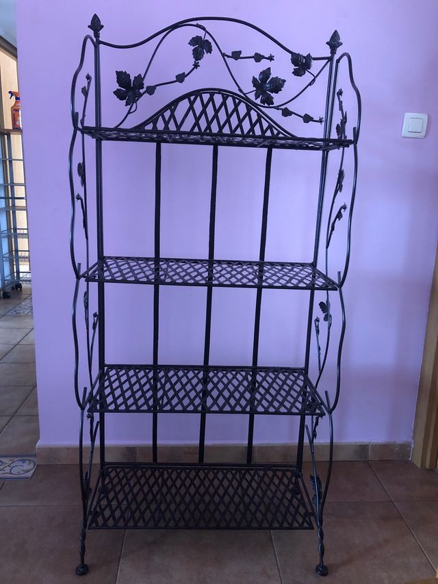 Estantería de hierro forjado. Detalles florales.