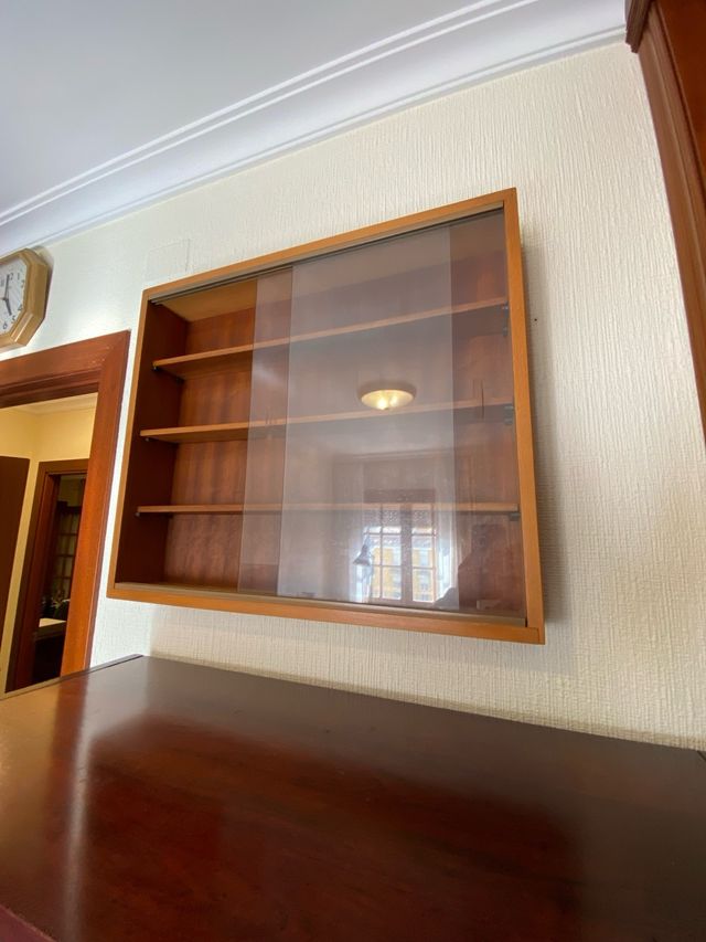 Estantería de madera con puertas correderas