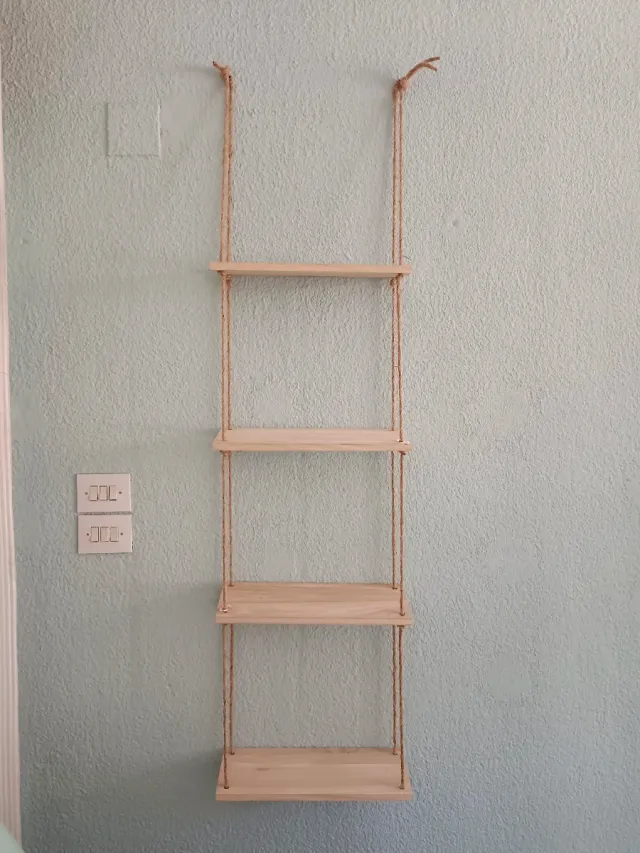 Estantería colgante de madera con cuerdas de yute. - Diseño de 4 baldas. - Ideal para decoración.