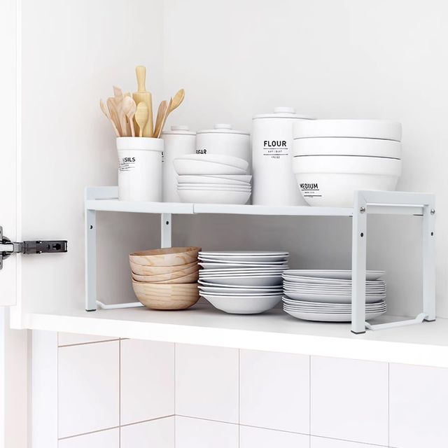 Estantería de armario extensible para organizar tu espacio. - Longitud ajustable de 35 a 66 cm. - Color blanco. - Altura 27 cm.