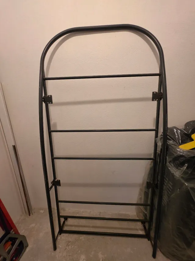 Detalles del productoPráctica estantería metálica de color negro, con un diseño plegable para facilitar su almacenamiento y transporte. Ideal para organizar diversos objetos.