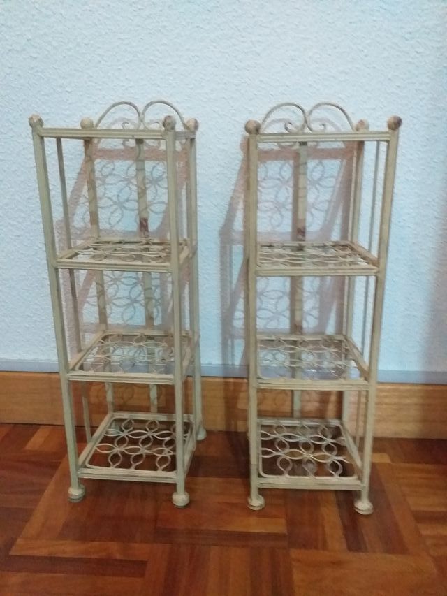 Detalles del productoDos estanterías pequeñas de hierro pintadas en beige envejecido Medidas del producto