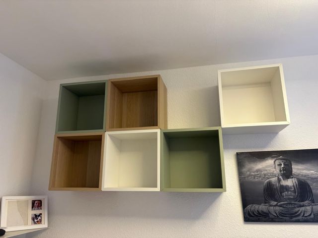 Conjunto de estanterías cuadradas Eket, perfectas para organizar tu espacio. Incluyen las guías para su instalación.
