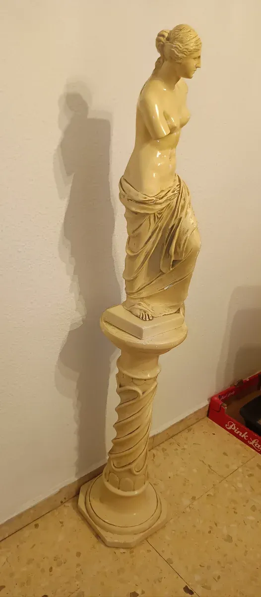 Detalles del productoEstatua de escayola con casi 40 años de antigüedad. Representa una figura clásica.