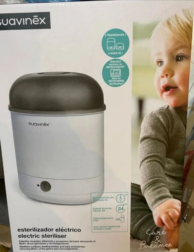 Detalles del productoSuavinex, Esterilizador Eléctrico a Vapor, 3 en 1. Esterilizador de Biberones, Chupetes y Accesorios. 3 Formatos: Compacto, Gran Capacidad y Microondas. Esteriliza Hasta 6 Biberones en 6 Minutos