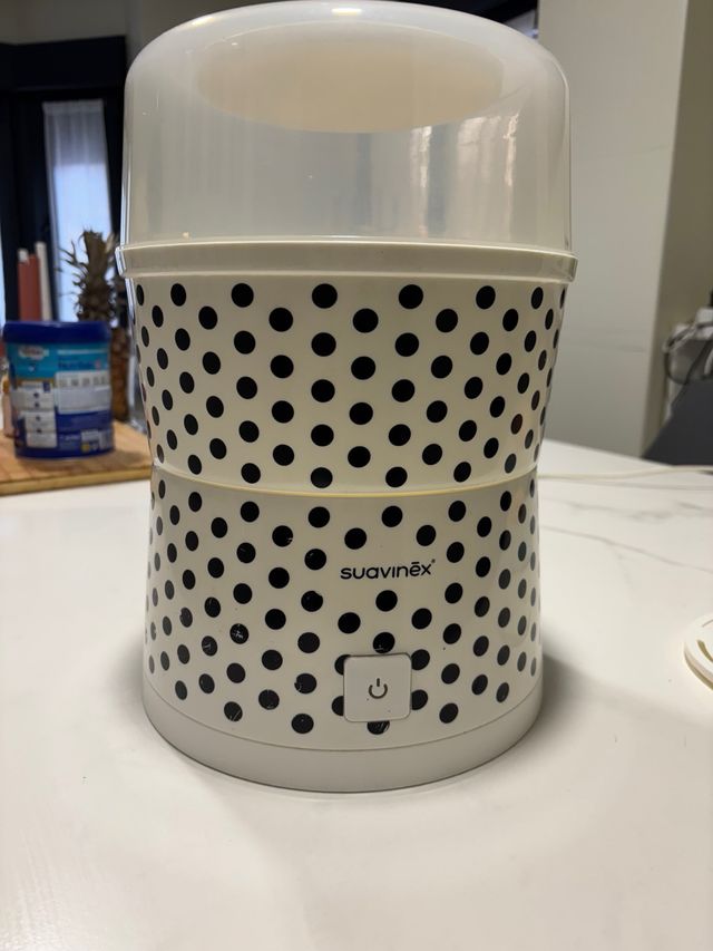Detalles del productoEsterilizador de la marca Suavinex con un divertido diseño de lunares.