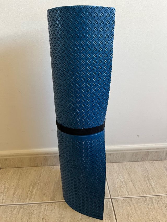 Esterilla aislante de color azul con textura. - Textura antideslizante. - Ideal para camping o actividades al aire libre.