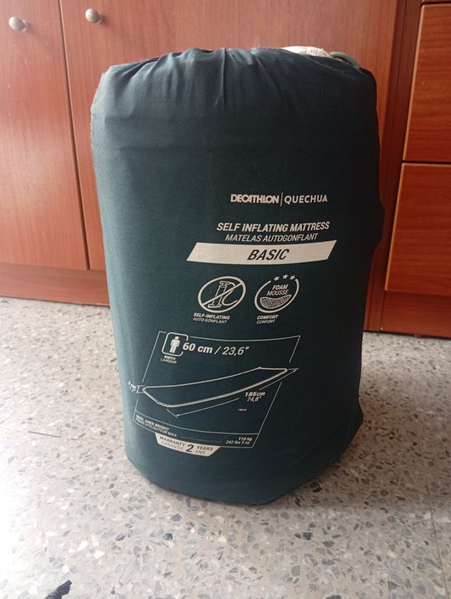 Esterilla autohinchable Decathlon. Está como nueva. - Medidas: 185 cm x 60 cm x 3 cm. - Peso máximo: 110 kg.