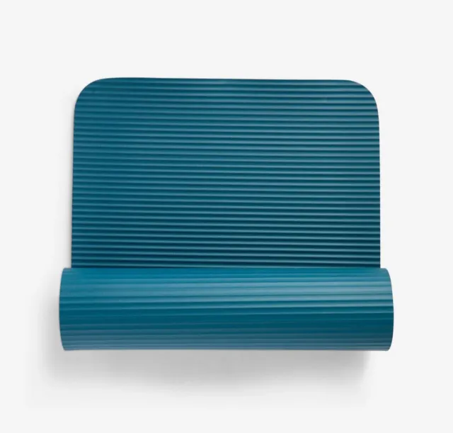Esterilla de Pilates de Decathlon en color azul y 10mm de grosor. - Material confortable para tus ejercicios. - Diseño con líneas para un mejor agarre.