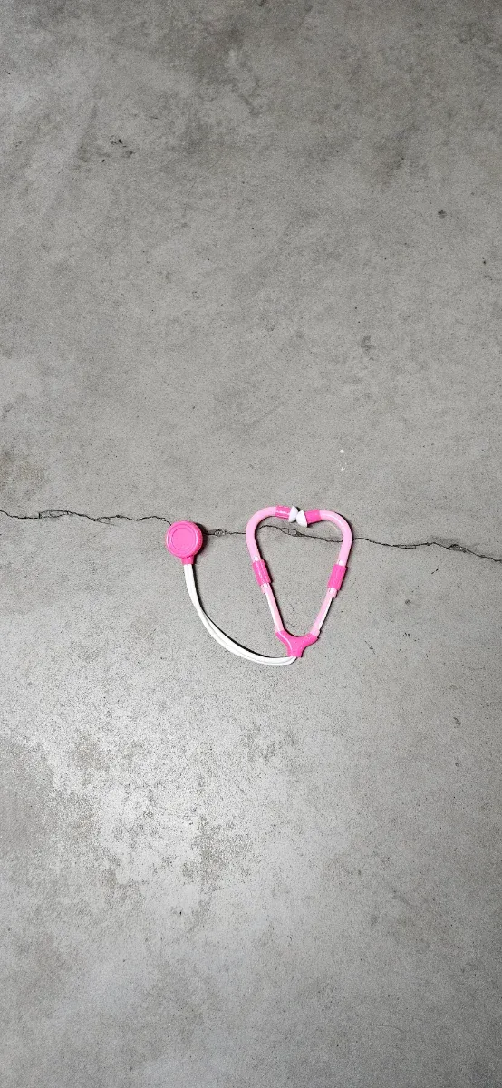 Estetoscopio de juguete en color rosa, ideal para juegos de simulación. - Diseño en forma de corazón. - Tubo blanco.
