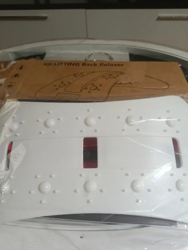 Dispositivo para el estiramiento y relajación de la espalda. - Diseño ergonómico. - Superficie con relieves para masaje.