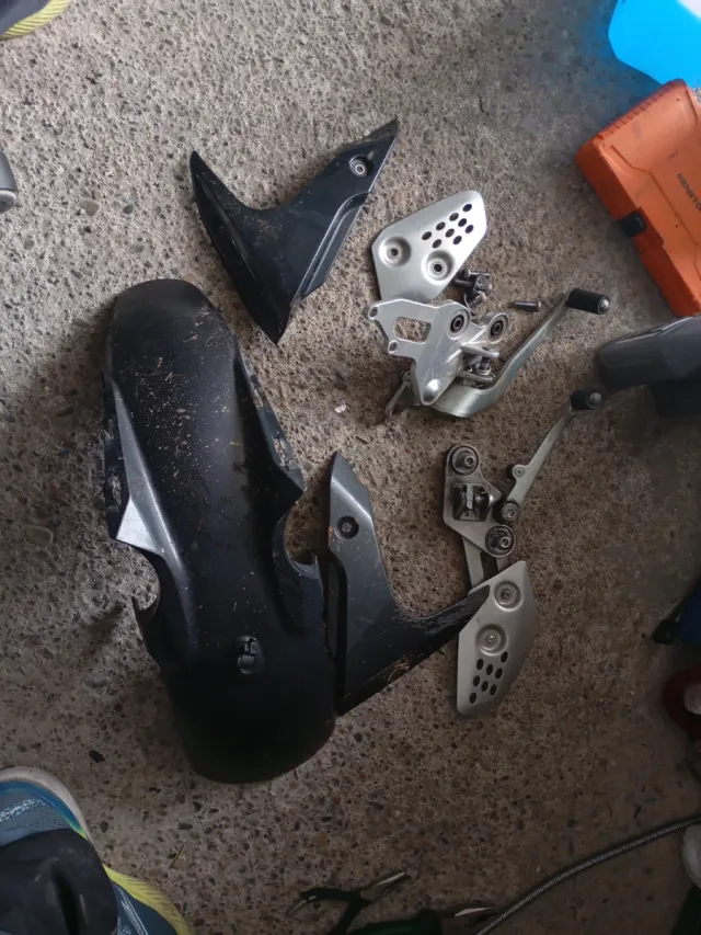 Detalles del productoPiezas de repuesto para Yamaha MT-07, incluyendo estriberas y guardabarros.
