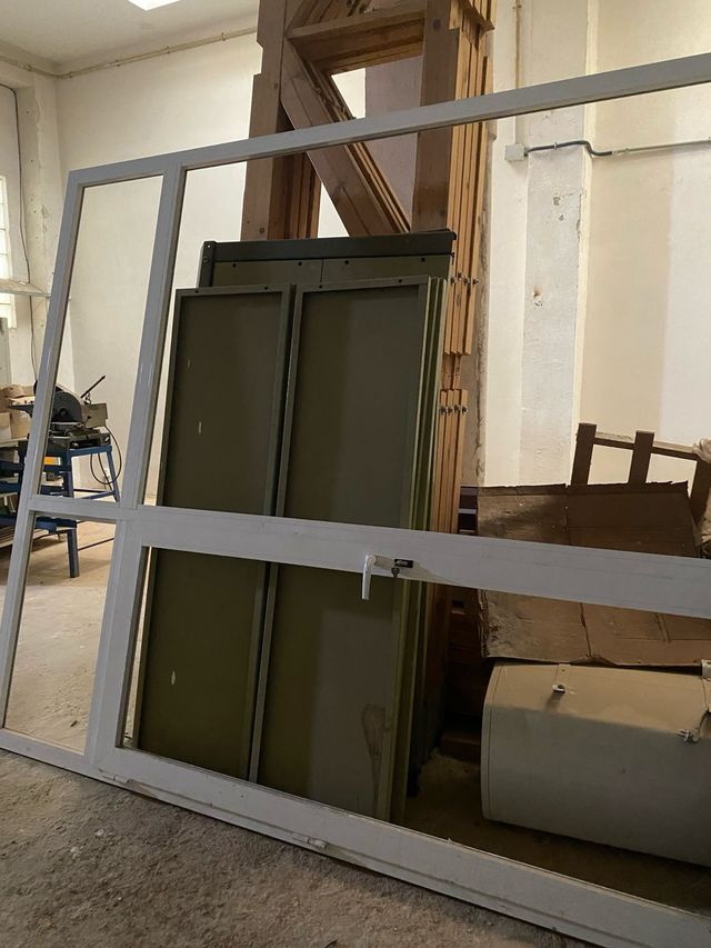 Detalles del productovendo estructura de aluminio con parte fija y una puerta. Medidas de la puerta pequeña 208,06 x 90. Medidas del producto