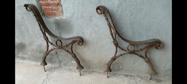 Se venden dos estructuras de hierro fundido para banco. - Material: Hierro fundido. - Diseño clásico y ornamental. - Ideal para restauración o proyectos de jardinería.