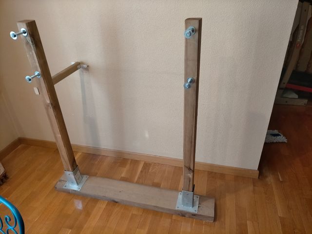 Vendo estructura de pesa . Está completamente nuevo. Se atornilla de un lado a la pared.madera muy fuerte