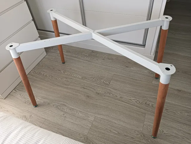 Detalles del productoConjunto de estructura metálica para mesa con cuatro patas de madera.