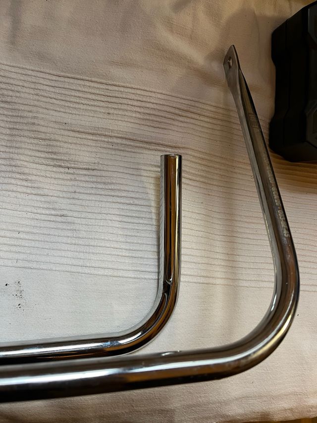Estructura de parachoques delantero para kart CRG. Pieza de metal cromado. - Material: Metal cromado. - Diseño curvo.