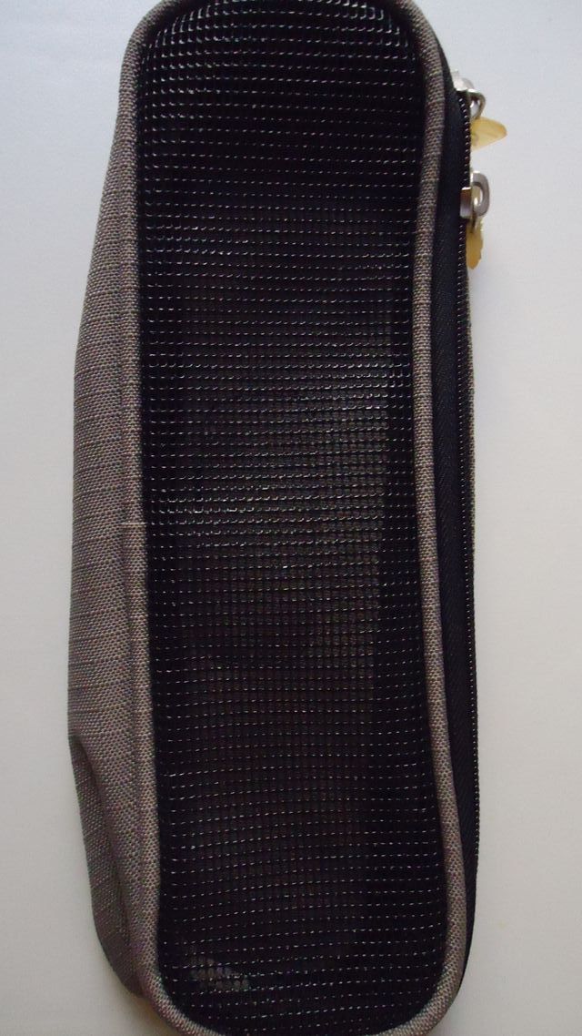 Detalles del productoEstuche con forma alargada ancho en lona y con cremallera de color marrón. Con doble cremallera. El formato de este estuche es muy práctico ya que tiene capacidad para almacenar lo imprescindible.El estuche ideal para los que necesitan a mano pocas piezas y no quieren almacenar lo innecesario. Medidas largo 25.5cm, ancho 8cm, Alto 4.5 con velcro. Según fotos.