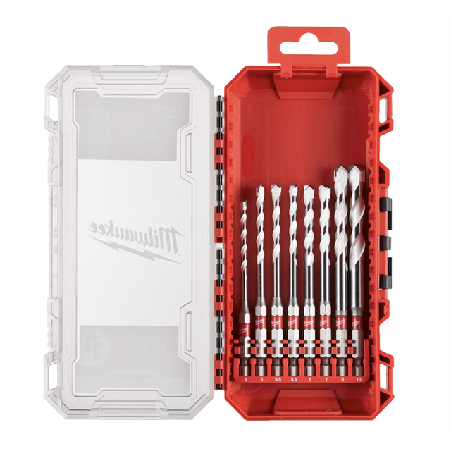 Brocas con punta de carburo de tungsteno (TCT), permitiendo perforar en hormigón, ladrillos, tejas, bloques de hormigón celular, chapas de metal fino, aluminio, baldosas cerámicas de dureza blanda a media, todo tipo de madera y PVC. Incluye: Ø4 x 100mm, Ø5 / 5 / 6 / 6 x 108mm, Ø8 / 10 x 120mm, Ø.12 x 150mm. Espiral en color blanco para identificarla fácilmente en la caja de herramientas.