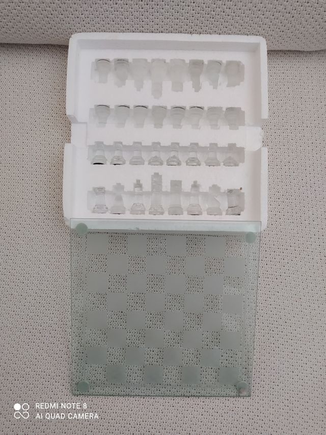 Estuche Juego de Ajedrez de CRISTAL. Figuras Tradicionales de Ajedrez. Nuevo. Sin utilizar. En su caja original.