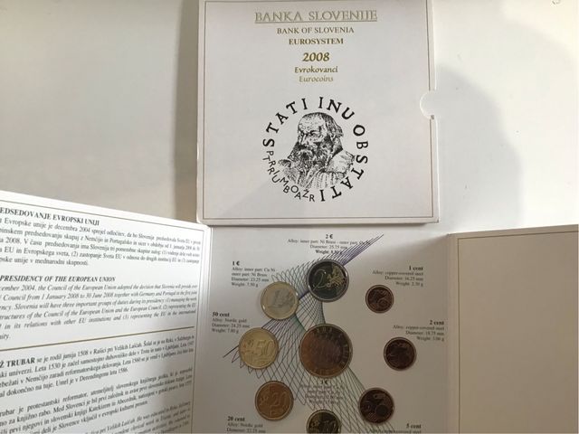 Detalles del productoEstuche conmemorativo de las monedas de Euro de Eslovenia del año 2008.
