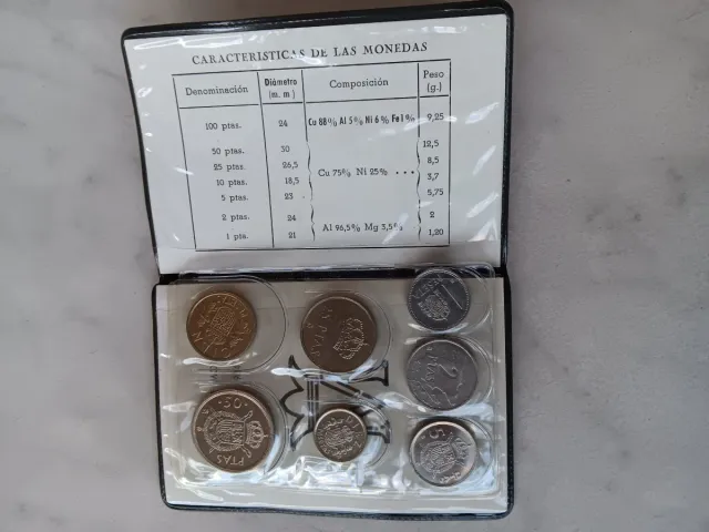 - Monedas visibles: 100 ptas., 50 ptas., 25 ptas., 10 ptas., 5 ptas., 2 ptas., 1 pta.