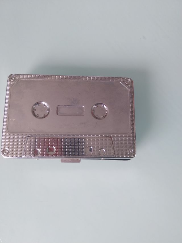 Detalles del productoEste estuche tiene un diseño único inspirado en un casete de música antiguo. Su acabado plateado le da un toque retro y elegante.