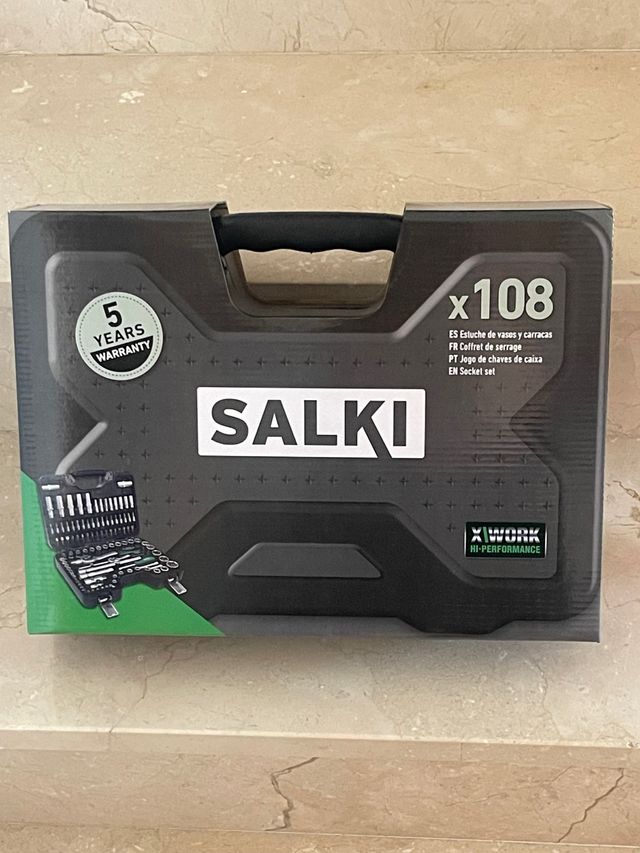 Detalles del productoEstuche Salki Pro 1/4" + 1/2" con 108 piezas de llaves de carraca y vasos fabricadas en acero vanadio. Para conocer el contenido exacto del estuche, consulta la ficha técnica del producto. Las piezas poseen forma hexagonal y están indicadas para un uso doméstico, bricolaje y pequeños talleres de reparación.