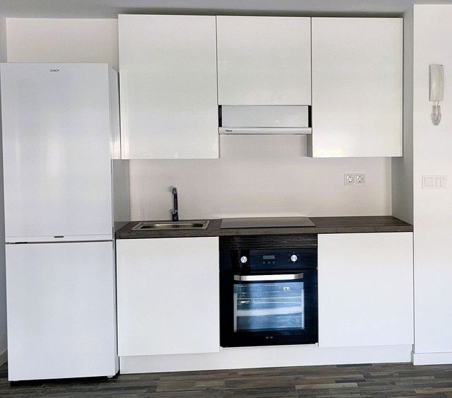 Dispone de cocina integrada en el espacio principal, completamente equipada con vitrocerámica, campana extractora, horno y frigorífico.