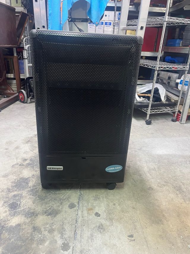 Estufa de butano Llama Azul con ruedas para facilitar su movilidad. - Diseño moderno y funcional. - Ruedas para transporte.