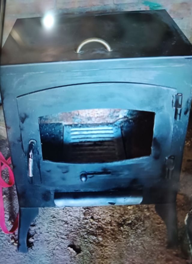 Detalles del productoEstufa de leña con horno/parrilla en la parte superior con tapa. No se hacen envíos, hay que venir a recogerla. No tiene cristal de la puerta porque se rompió.