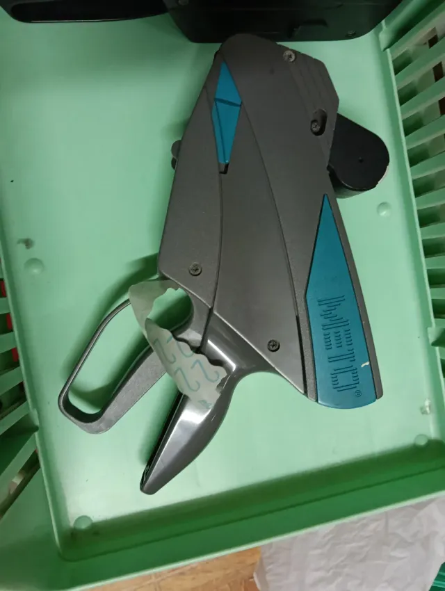 Etiquetadora de precios en color gris y azul. - Diseño ergonómico. - Incluye rollo de etiquetas.