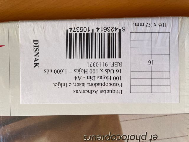 Detalles del productoPaquete de etiquetas adhesivas para fotocopiadora, láser e inkjet.