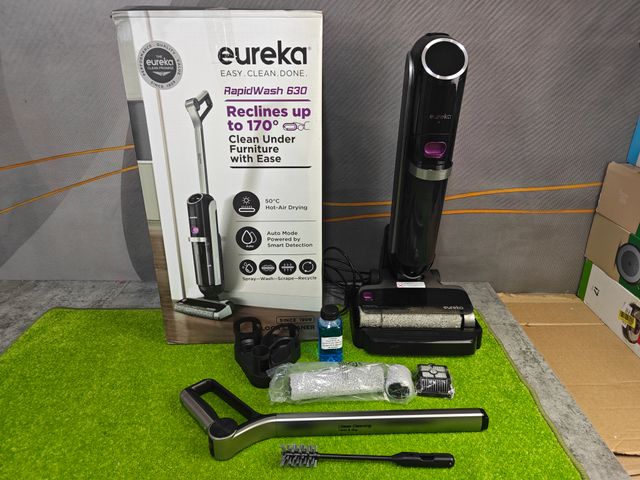 Detalles del productoEureka RapidWash NEW630 Aspiradora Fregadora Sin Cable en Seco y Húmedo,Posición Plana de 170°,Secado por Aire Caliente a 60°C,21600 Pa,38 Min,Autolimpieza y Función Antienredos,Depósito Doble,LED