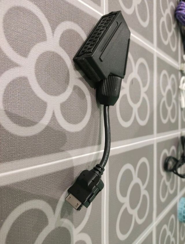 Cable de conexión auxiliar Iphone a Euroconector. 150cm. 18 pines