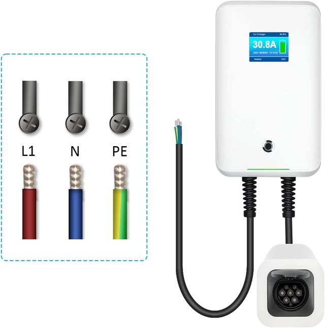Detalles del productoMorec EV Estación de Carga 32 A ev Cargador 7KW con un zócalo y un Cable de 1m de Longitud accesado a la Fuente de alimentación…