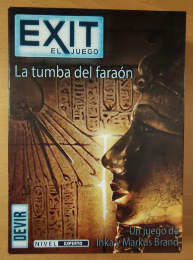 Juego de escape Exit: La Tumba del Faraón de Devir. - Incluye tablero giratorio, cartas y cuaderno. - Componentes para una experiencia de juego inmersiva.
