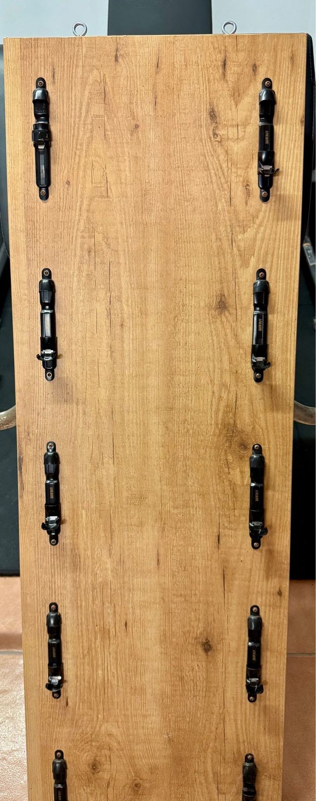 expositor para 10 carretes de pesca. medidas 122 x 40 cm. una vez lleno queda como en la última foto. perfecto para tienda o para tenerlo todo ordenado