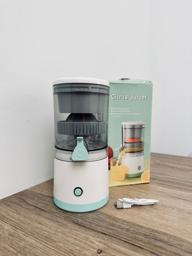 Detalles del productoPequeño exprimidor licuadora automático inalámbrico sin manos de Amazon. Tiene mucha potencia y deja las naranjas completamente exprimidas. Fácil de limpiar. Se carga mediante cargador USB y tiene mucha autonomía de batería. Exprimidor de naranjas y limones de moda. Completamente nuevo, tengo varias unidades, pueden contactar conmigo para enviar vídeos de demostración o más fotos. Robot de cocina. Es muy cómodo ya que no tiene palanca solamente hay que introducir la naranja y dejar que se exprima, pequeño y compacto.
