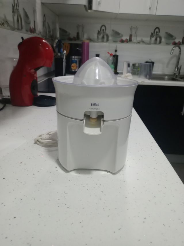 Exprimidor de cítricos Braun modelo Citromatic. - Diseño blanco. - Tapa transparente. - Base estable.