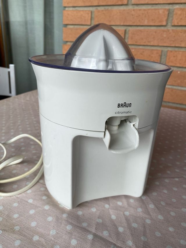 Exprimidor eléctrico Braun Citromatic en color blanco. Ideal para preparar zumos frescos. - Diseño compacto. - Fácil de usar y limpiar.
