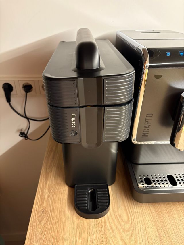 Exprimidor automático Citring en color negro. Diseño moderno y compacto. Solo tienes que introducir las naranjas y tendrás el zumo recién exprimido