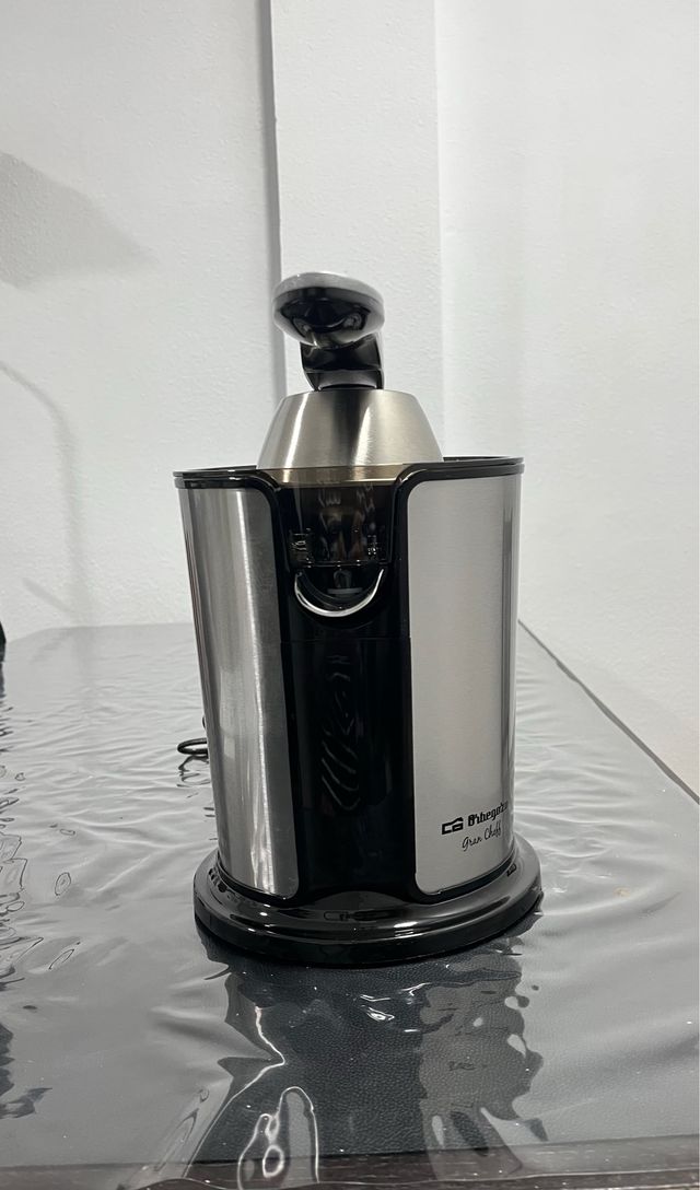 Detalles del productoExprimidor eléctrico de la marca Orbegozo. Su diseño combina acero inoxidable y detalles en negro.
