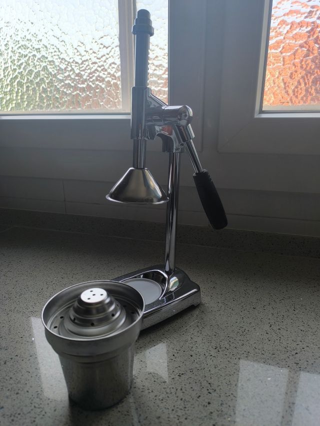 Detalles del productoExprimidor manual de acero inoxidable, ideal para cítricos. Se encuentra en perfecto estado.