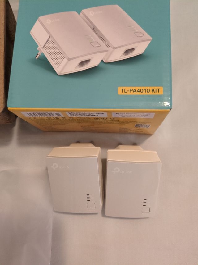Detalles del productoKit de dos adaptadores PLC TP-Link TL-PA4010 en perfecto estado. Son de color blanco y se encuentran en su caja original.